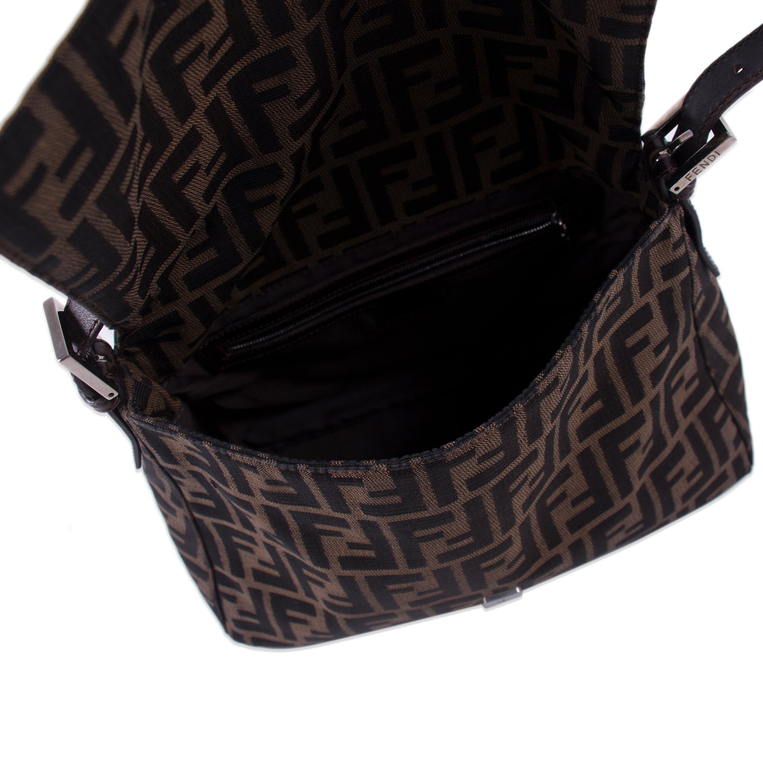 Details: Brown Zucca Canvas / Silver-Tone Hardware / Black Leather Adjustable Shoulder Strap / Brown Fabric Interior Lining / Single Pocket at Interior Wall / Snap Closure at Front