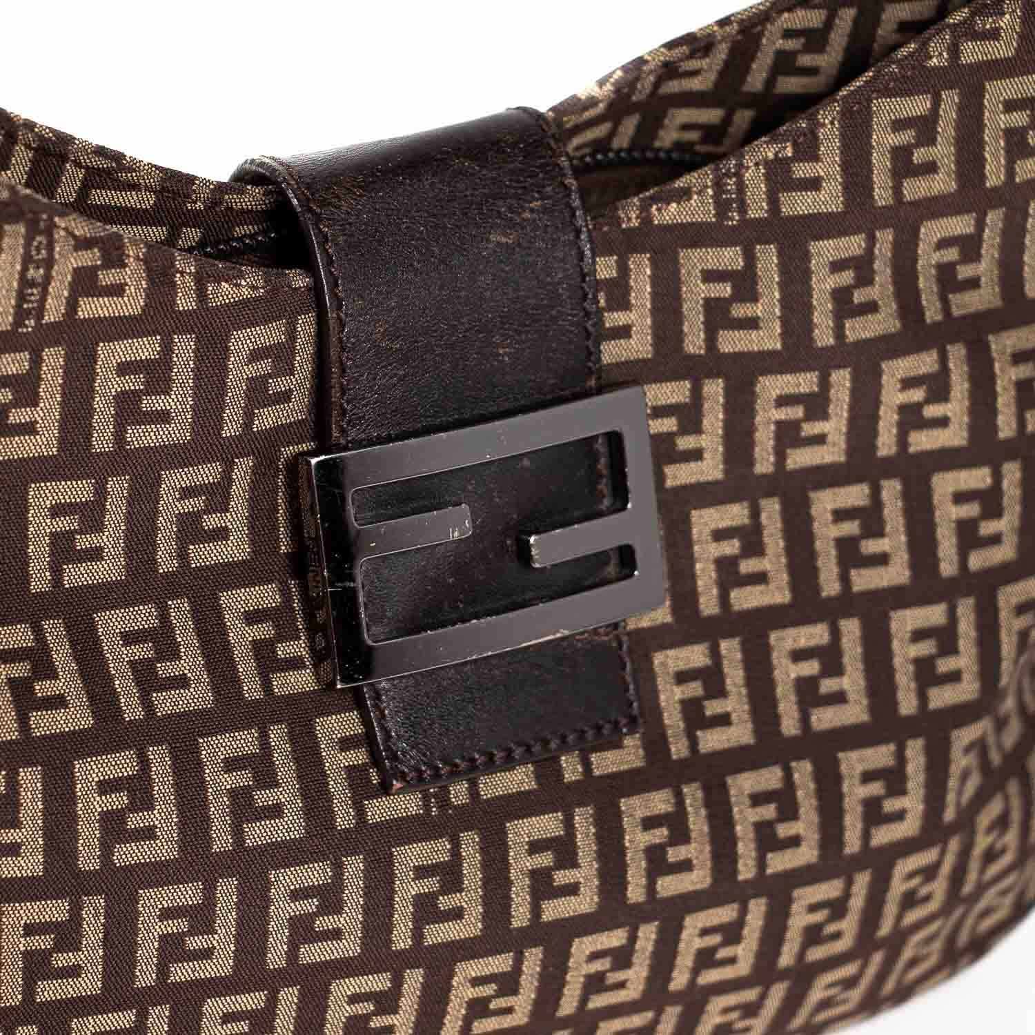 Details: Beige and Brown Zucca Canvas / Silver-Tone Hardware / Brown Leather Lining / Adjustable Shoulder Strap / Brown Woven Interior Lining / Single Pocket At Interior Wall / Snap Closure At Front