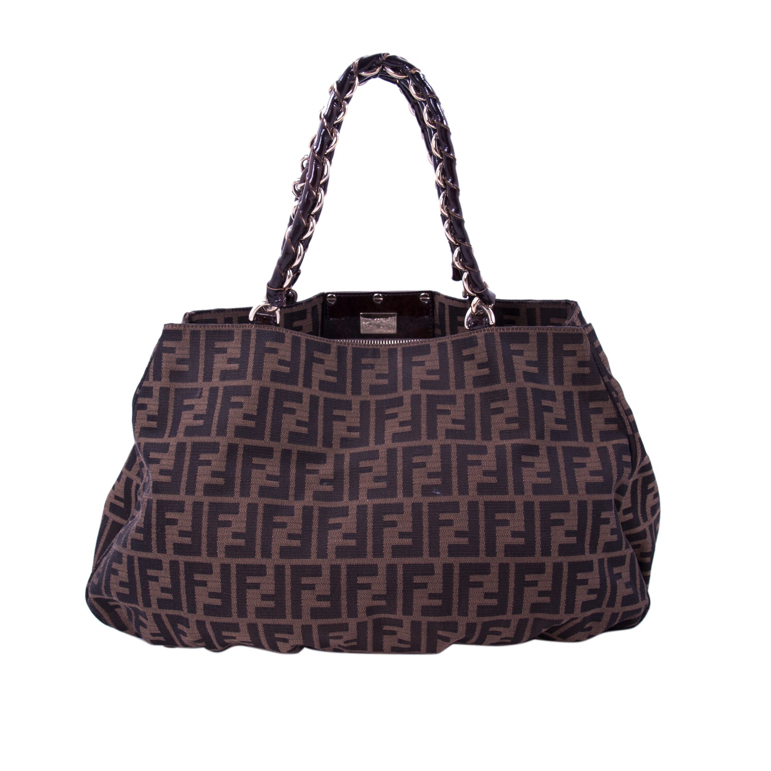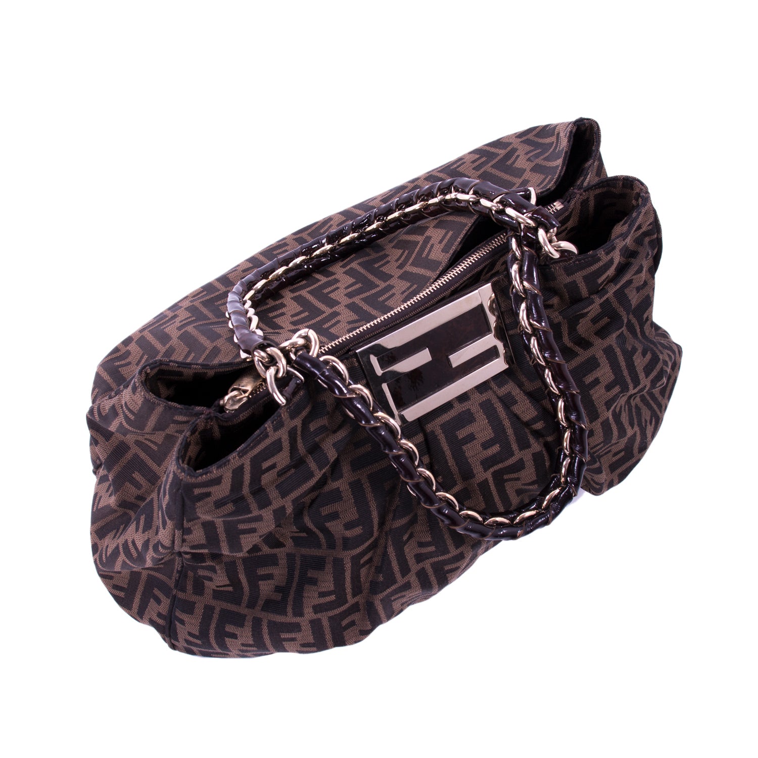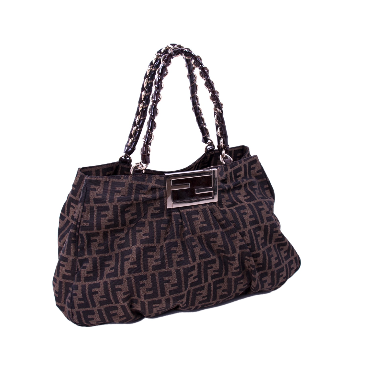 Description: Authentic Pre-Owned Fendi Mia Large Zucca Canvas Bag