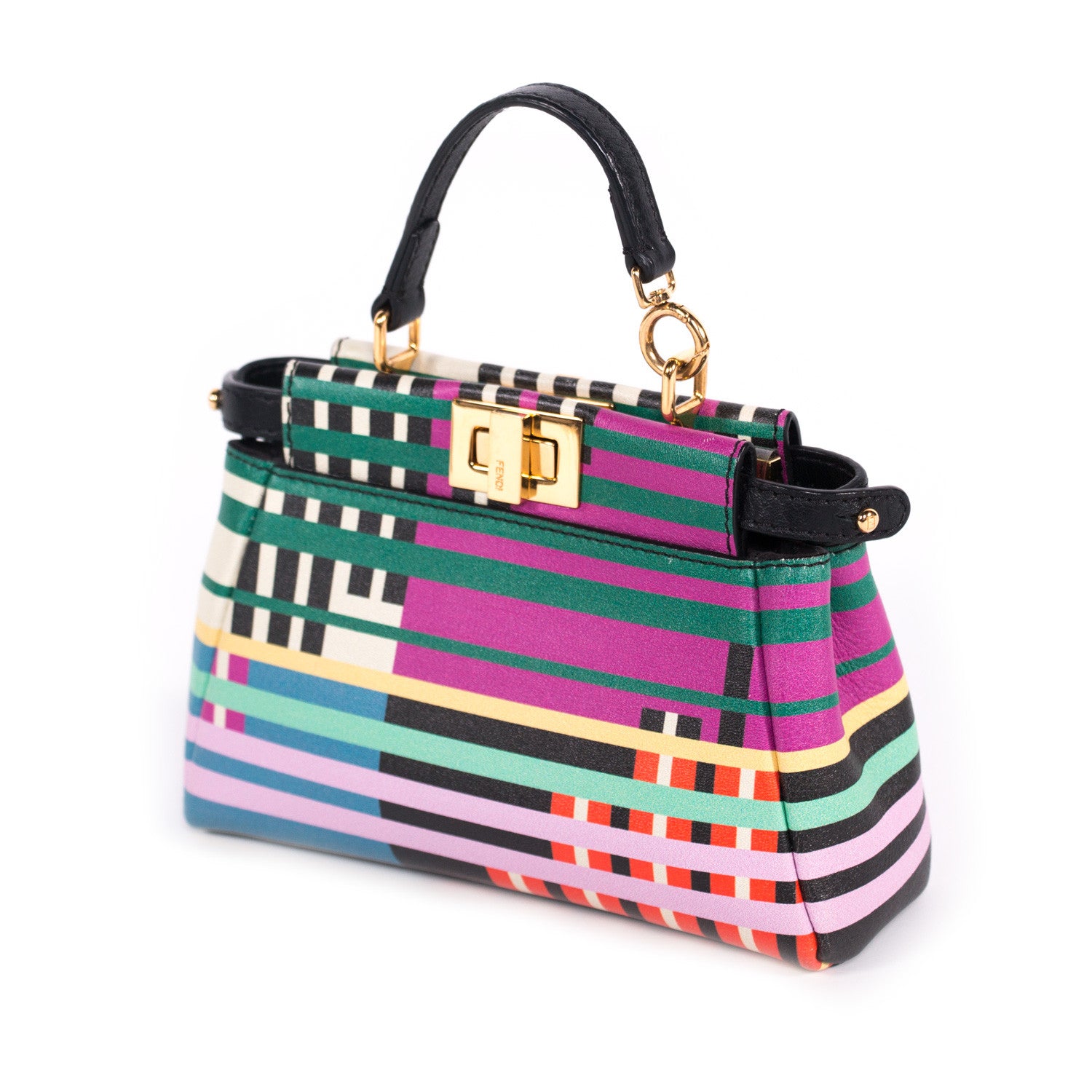 Details: Multicolor Nappa Leather / Gold-Tone Hardware / Removable Adjustable Shoulder Strap / Single Rolled Top Handle / Dual Small Compartment / Black Microfiber Lining / Dual Interior Card Slots / Turn Lock Closure At Front / Snap Closure At Back