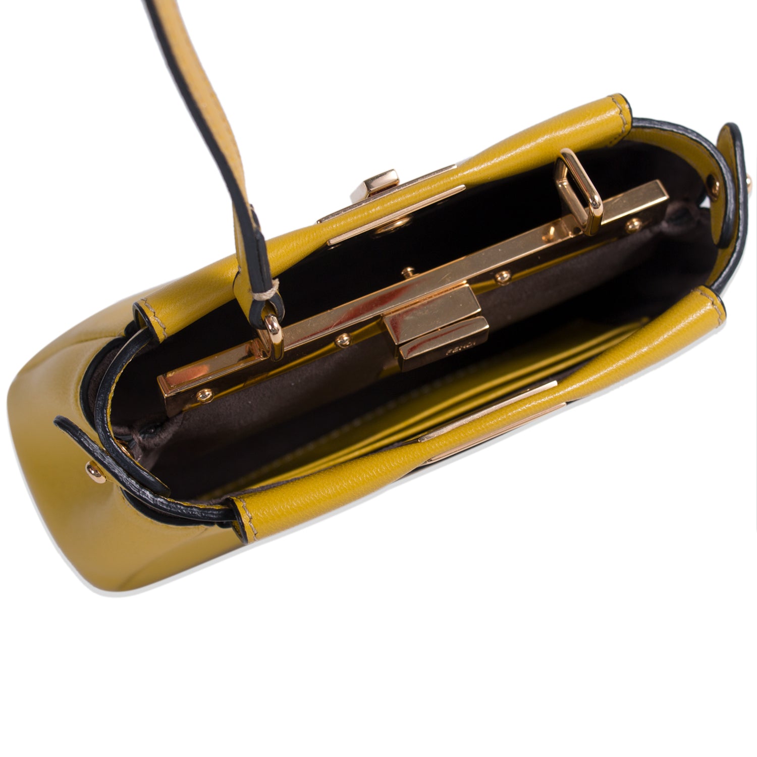 Details: Yellow Nappa Leather / Gold-Tone Hardware / Detachable Adjustable Shoulder Strap / Single Rolled Top Handle / Dual Compartments / Grey Microfiber Lining / Two Card Slots / Turn Lock Closure and Snap Closure