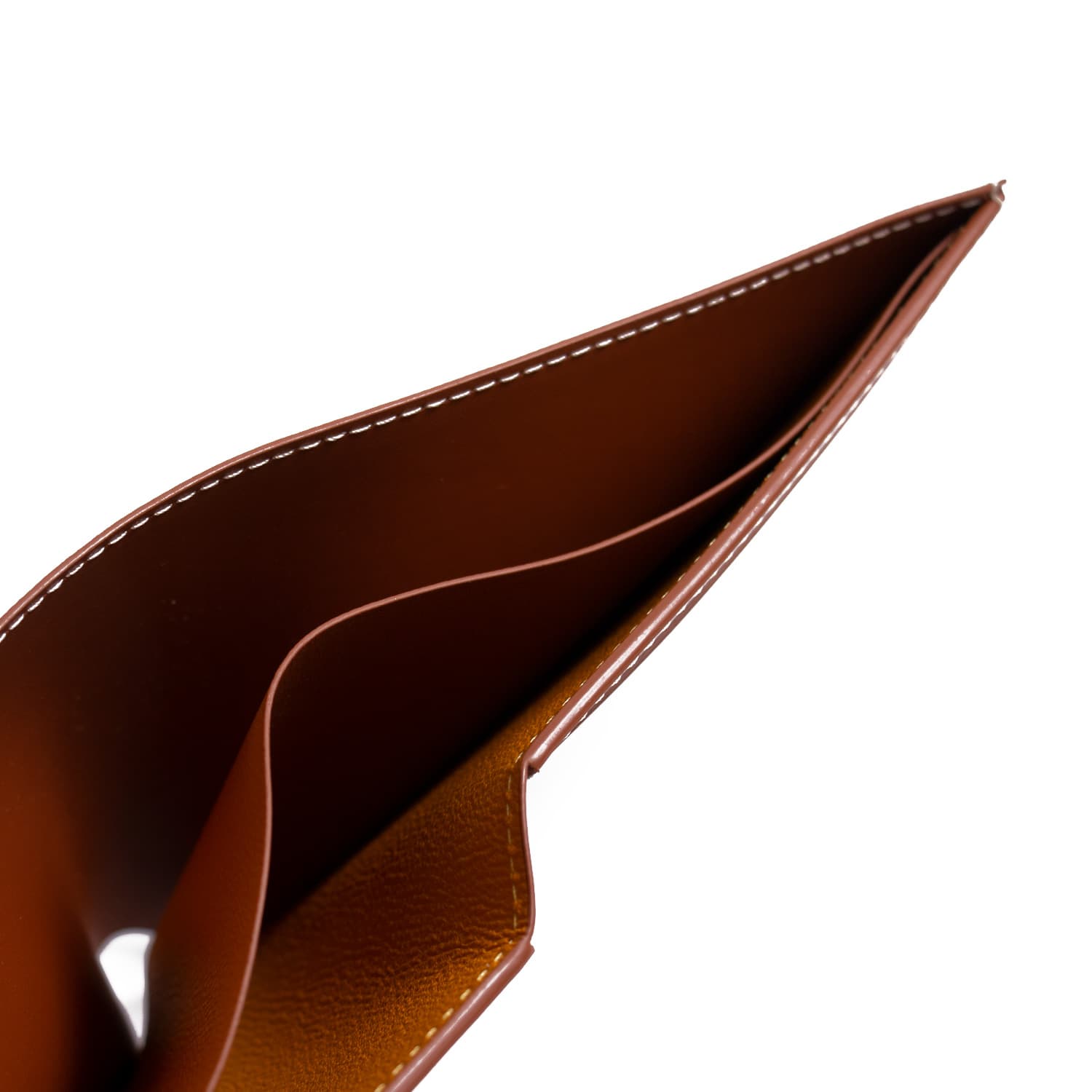 Details: Tan and Black Stenciled Goyardine Coated Canvas / Tan Leather Trim / Yellow Grained Interior Leather / Eight-Card Slots / Dual Bill Compartments / Dual Pockets