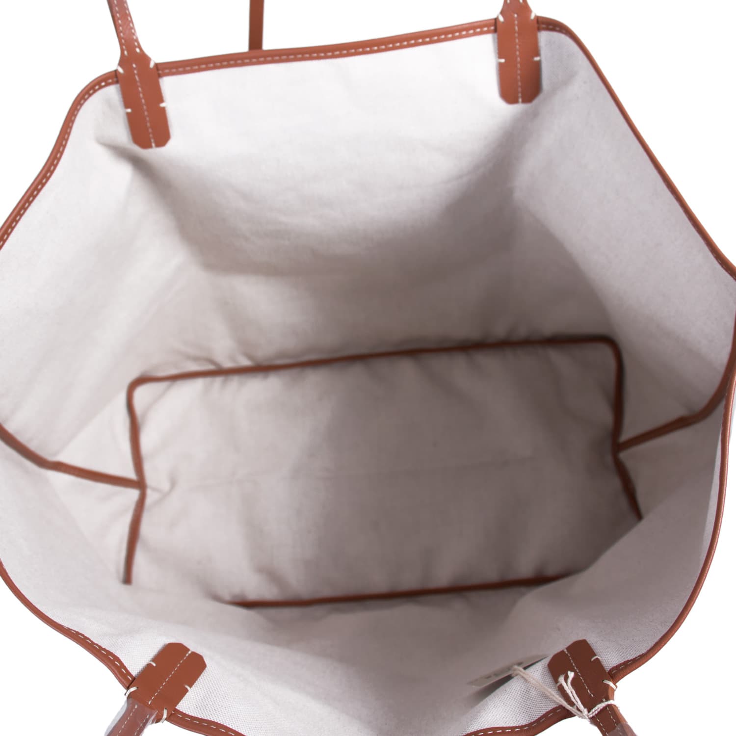 Details: Brown, Black and White Goyardine Coated Canvas / Tan Brown Leather Trim / Dual Rolled Handles / Single Compartment / Natural Fabric Lining / Detachable Pocket / Open Top