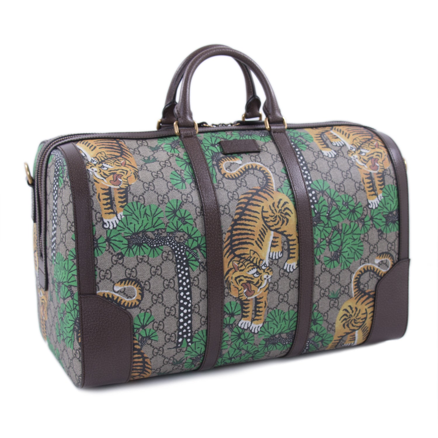 Description: Authentic New Gucci Bengal GG Supreme Weekender Duffle Bag