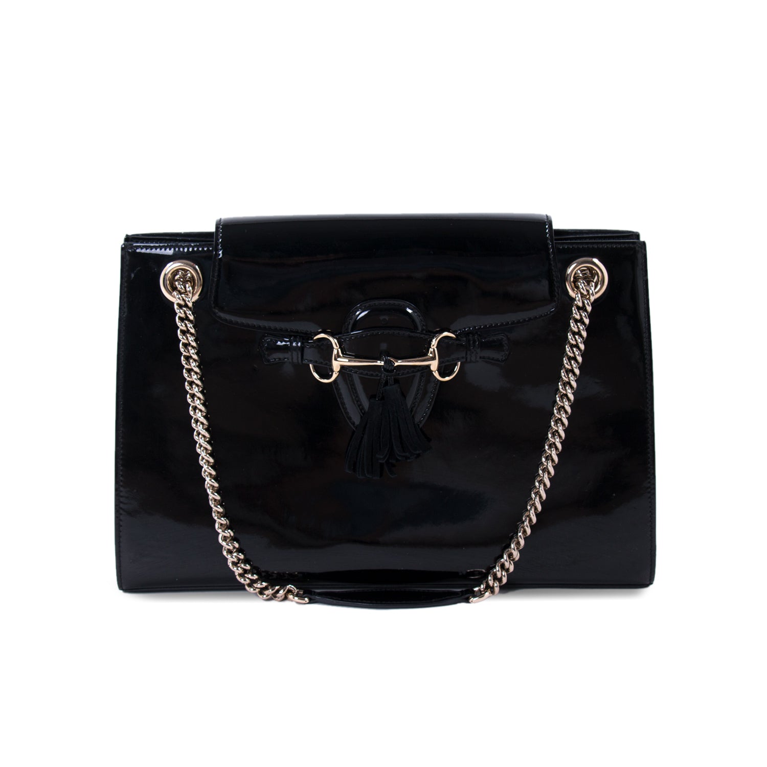 Description: Authentic Pre-Owned Gucci Emily Large Patent Leather Shoulder Bag