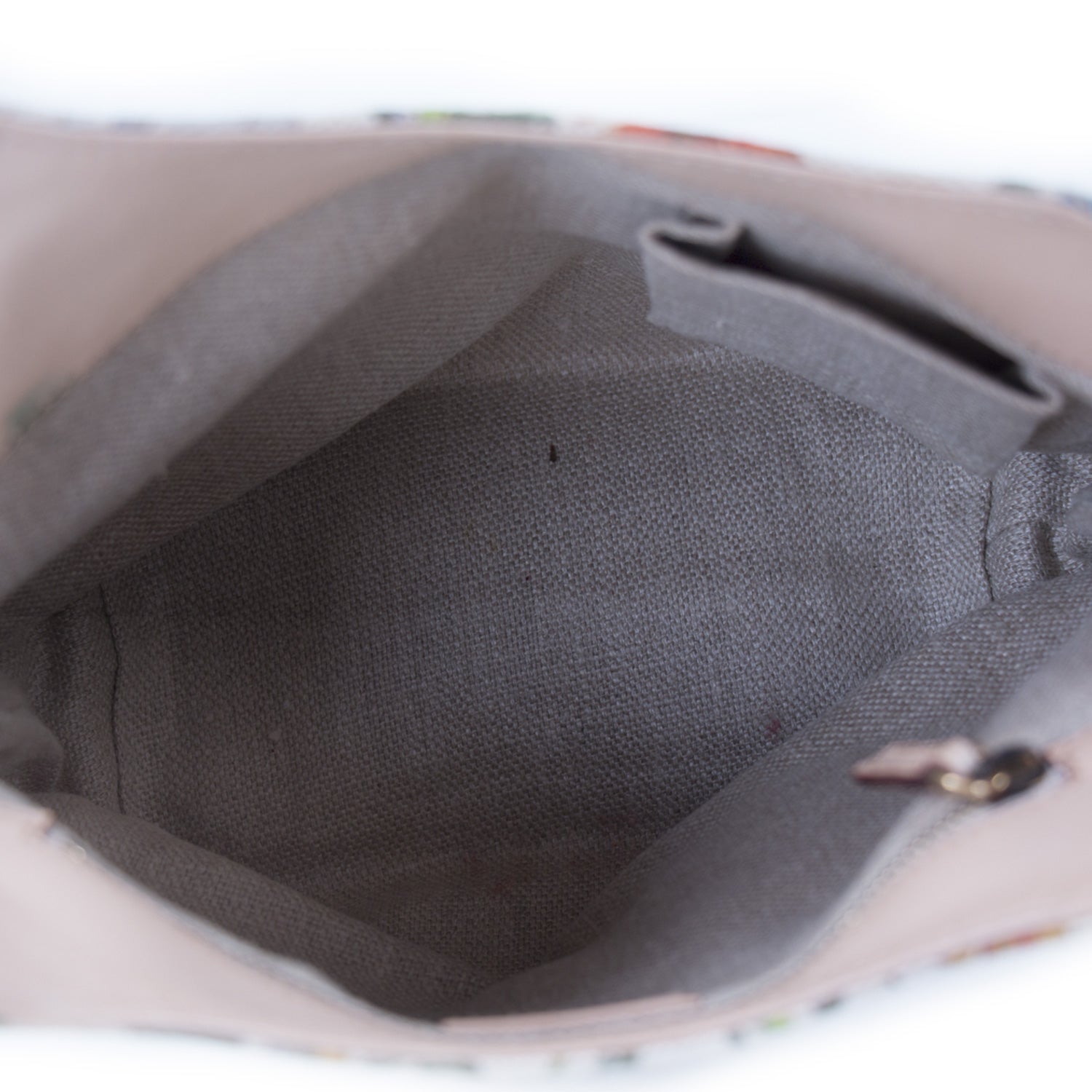 Details: Beige Canvas with Multicolor Flower Prints / Gold-Tone Hardware / Dual Bamboo Handles / Beige Leather Trim / Natural Canvas Lining / Zipper Pocket and Flat Pocket at Inside / Open Top