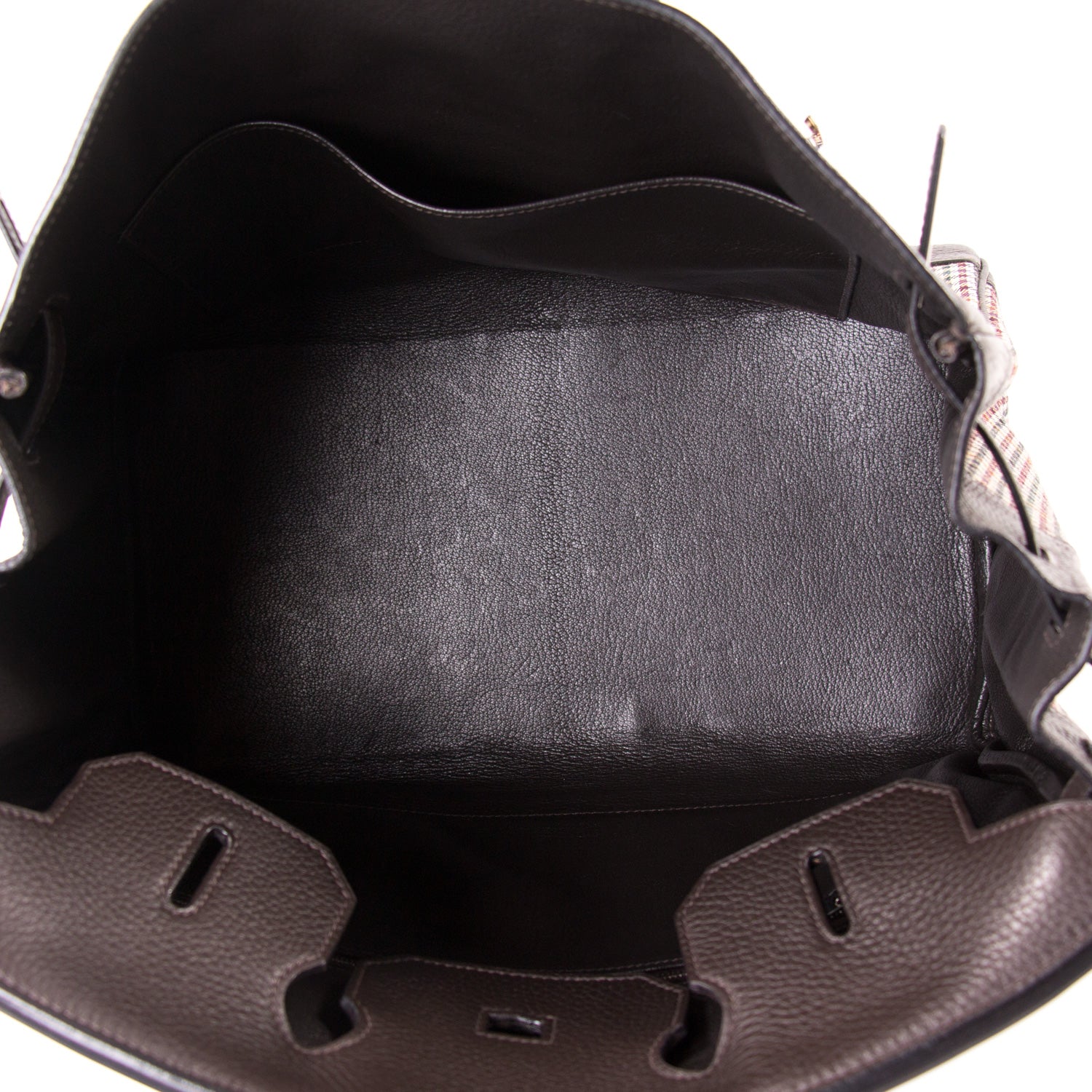 Description: Authentic Hermès Birkin 35 Taurillon Clemence Leather and Houndstooth Canvas
