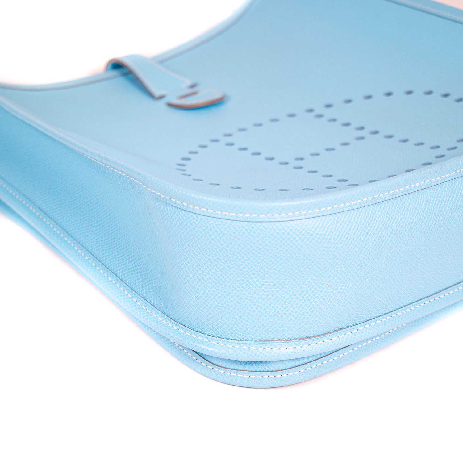 Details: Sky Blue Epsom Leather / Palladium Hardware / Detachable and Adjustable Shoulder Strap / Exterior Pocket at Back / Perforated H Logo at Front / Suede Interior Lining / One Compartment / Push Lock Closure