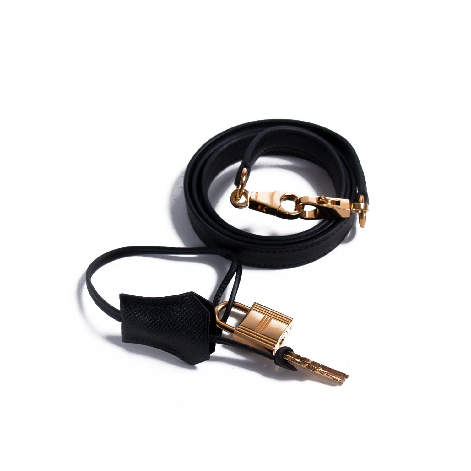 Details: Black Noir Epsom Leather / Gold Hardware / Single Rolled Handle / Detachable Shoulder Strap / Protective Studs at Base / Leather Lining at Interior / Zipper and Dual Pockets at Inside / Pull-Through Closure at Front Flap with Turn-Lock