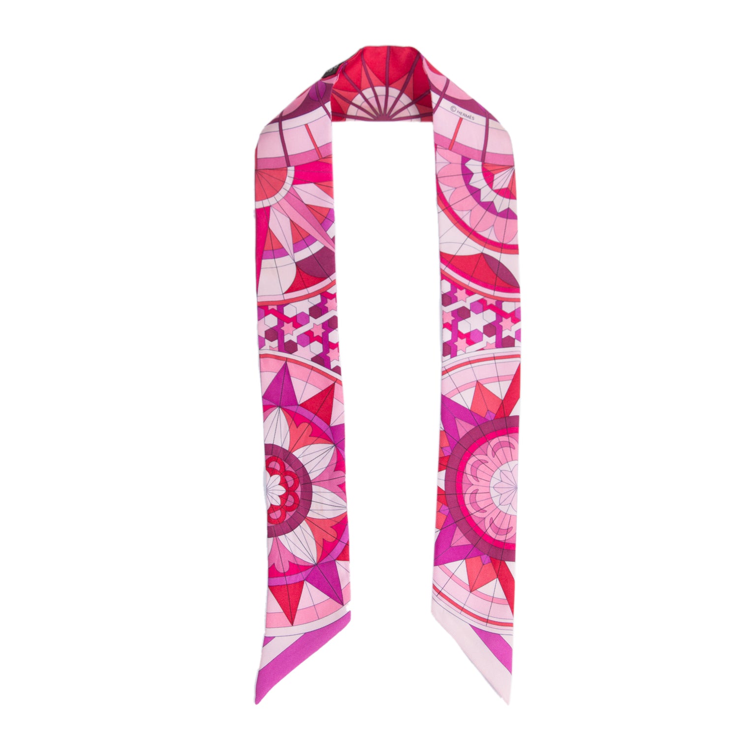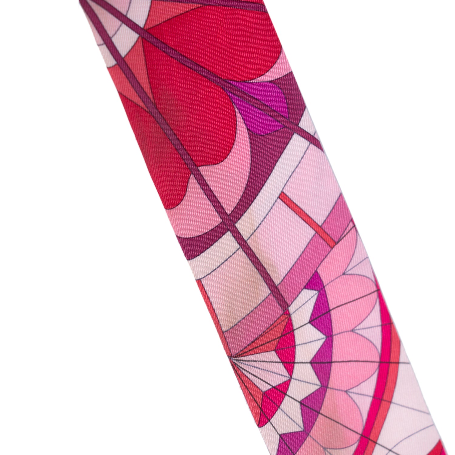 Details: Fuchsia-Mauve-Red-White Silk / Finished Edges / Geometric Prints Throughout