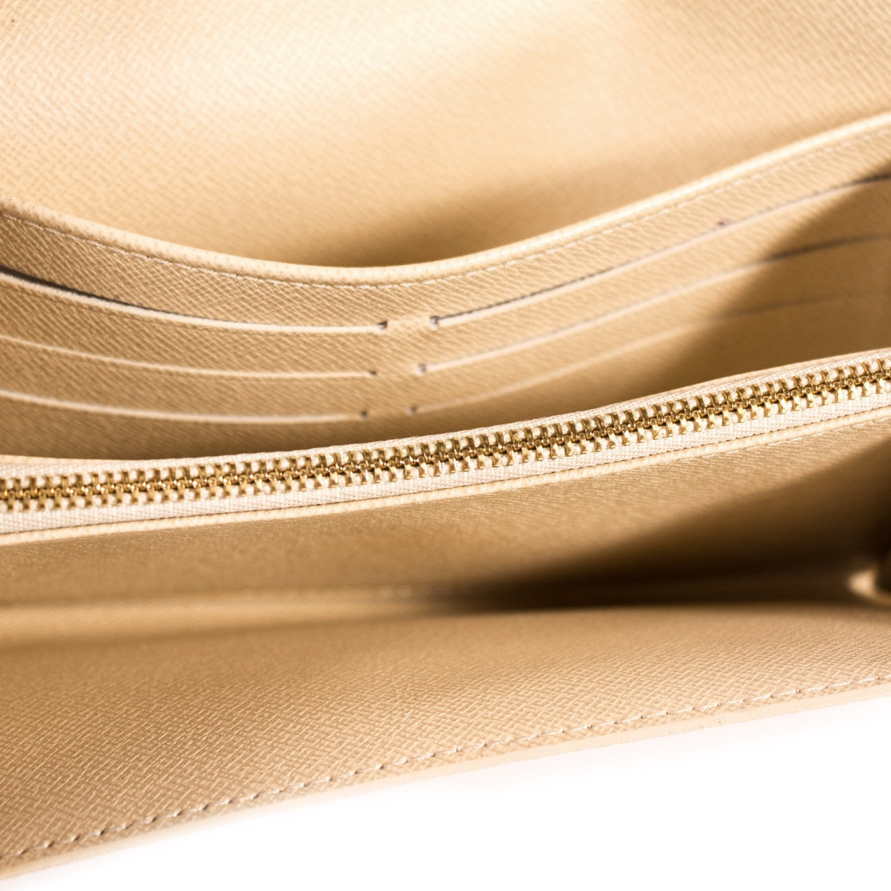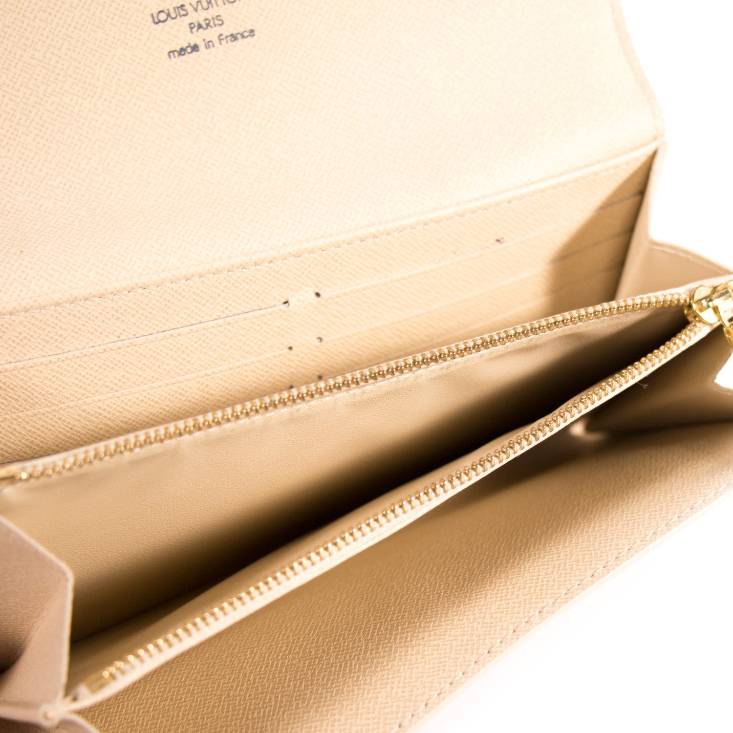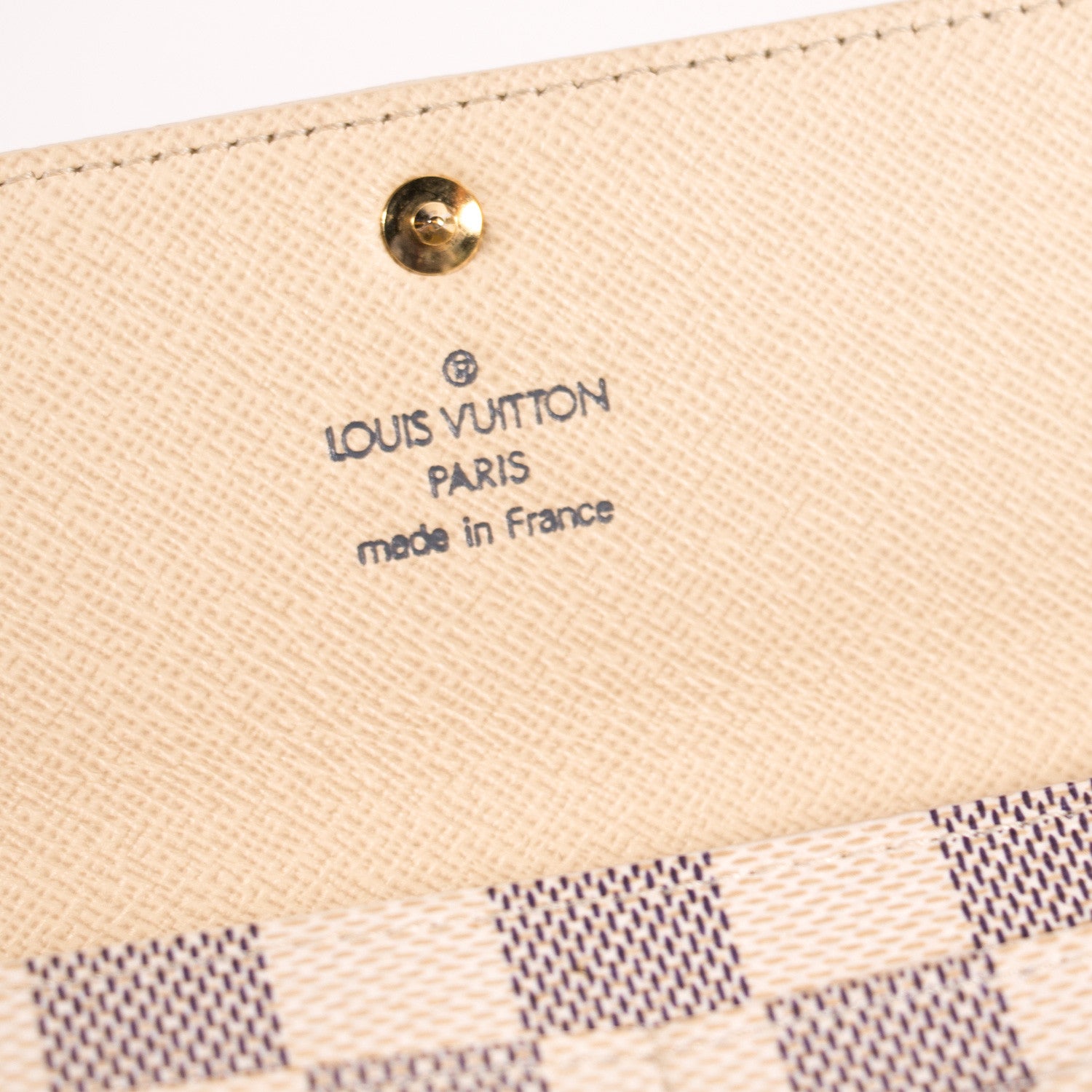 Details: Navy And Cream Damier Azur Coated Canvas Leather / Brass Hardware / Creme Coated Lining / Creme Leather At Interior / Four Compartments, One With Zip Closure / Ten Card Slots / Magnetic Snap Closure At Front