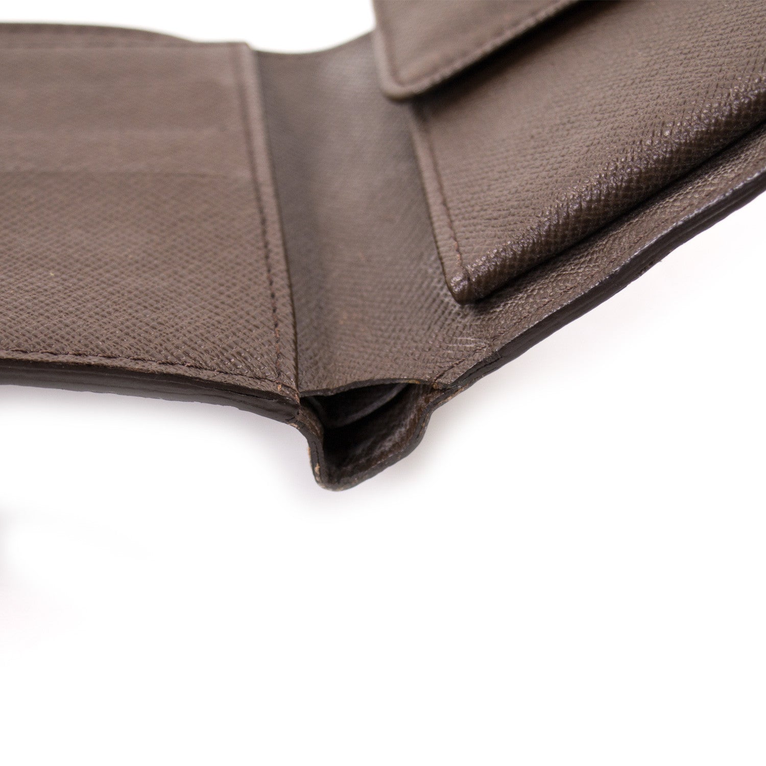 Details: Damier Ebene Coated Canvas / Chocolate-Coloured Smooth Leather Lining / One Snap-Closure Coin Compartment / Three Credit Card Slots / Two Compartments For Bills / Single Interior Slot For Business Cards