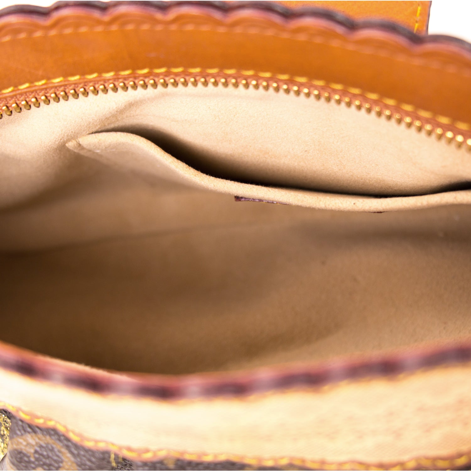 Details: Brown and Tan Monogram Coated Canvas / Gold-Tone Hardware / Single Chain-Link and Leather Pad Shoulder Strap / Tan Vachetta Leather Trim / Grey Alcantara Lining / Single Slip Pocket at Interior Wall / Zip Closure at Top / S-Lock Closure at Front Flap