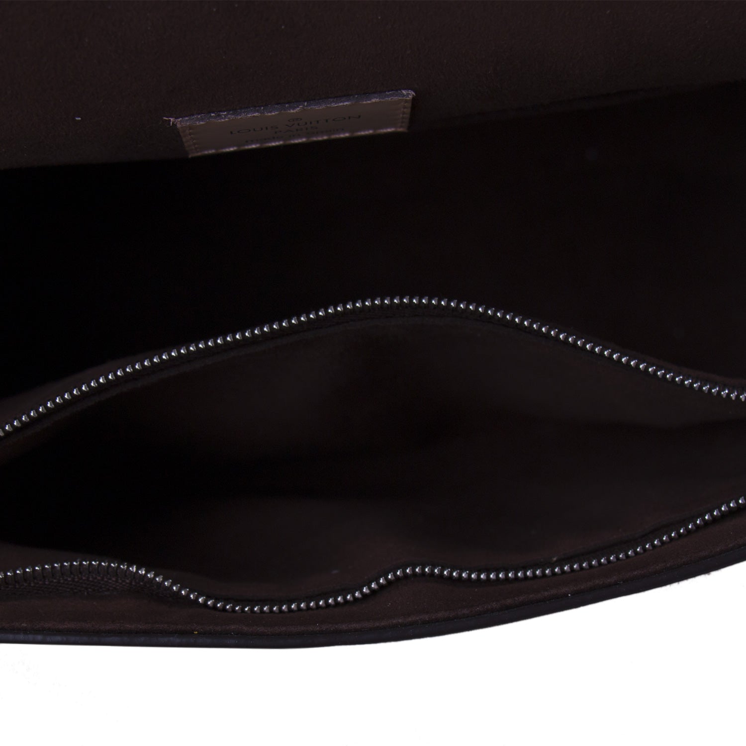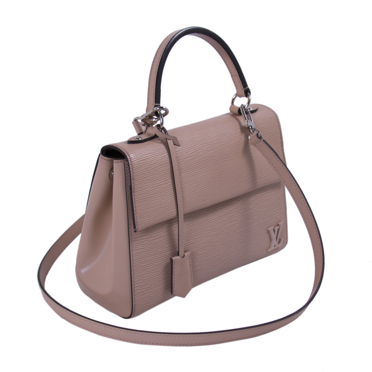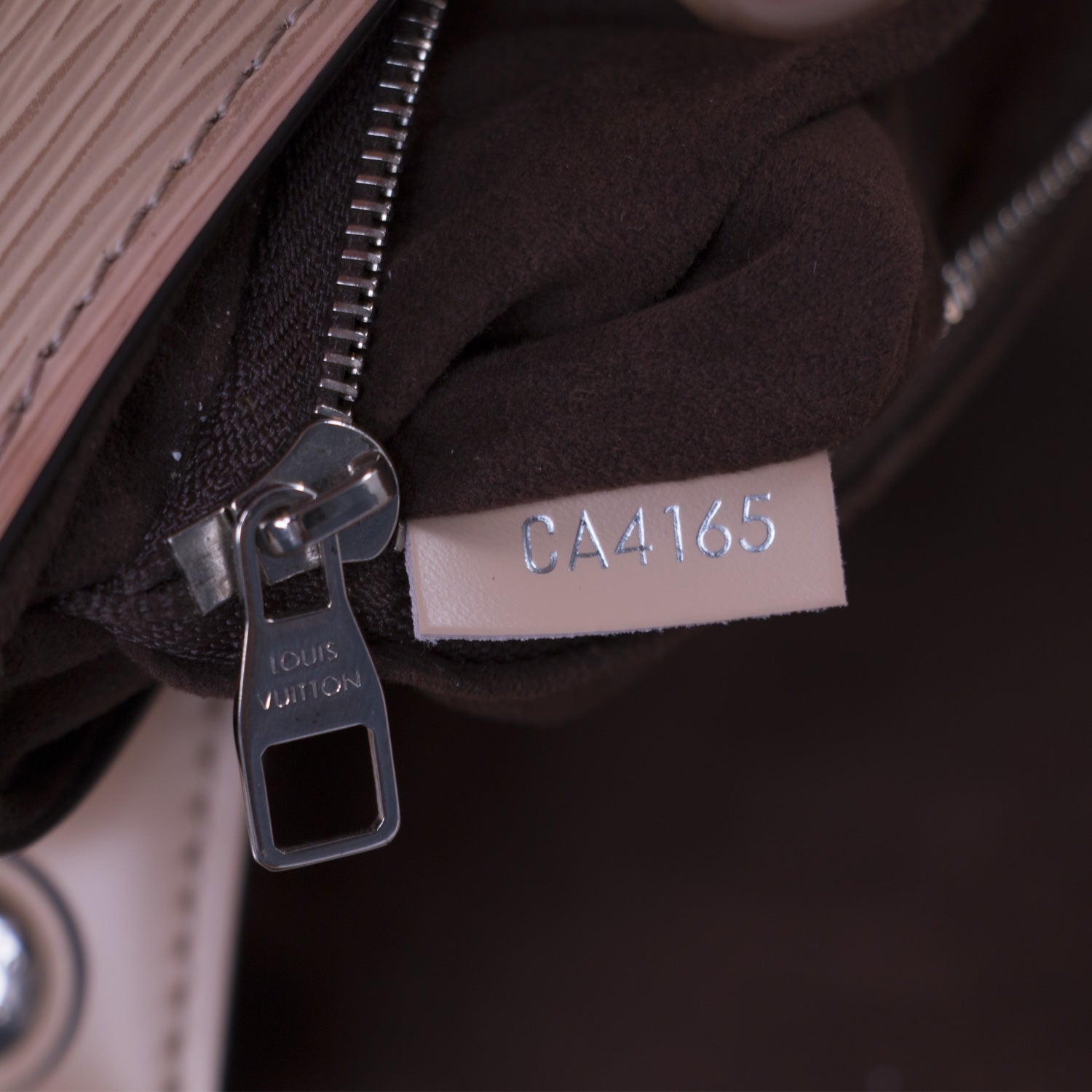 Details: Rose Nacre Epi Leather / Silver-Tone Hardware / Single Rolled Handle / Detachable Shoulder Strap / Black Leather Trim / Brown Alcantara Lining / Dual Slit Pockets and One Zipper Pocket / Magnetic Closure at Front Flap
