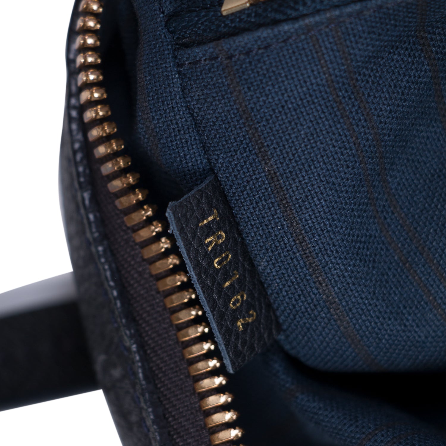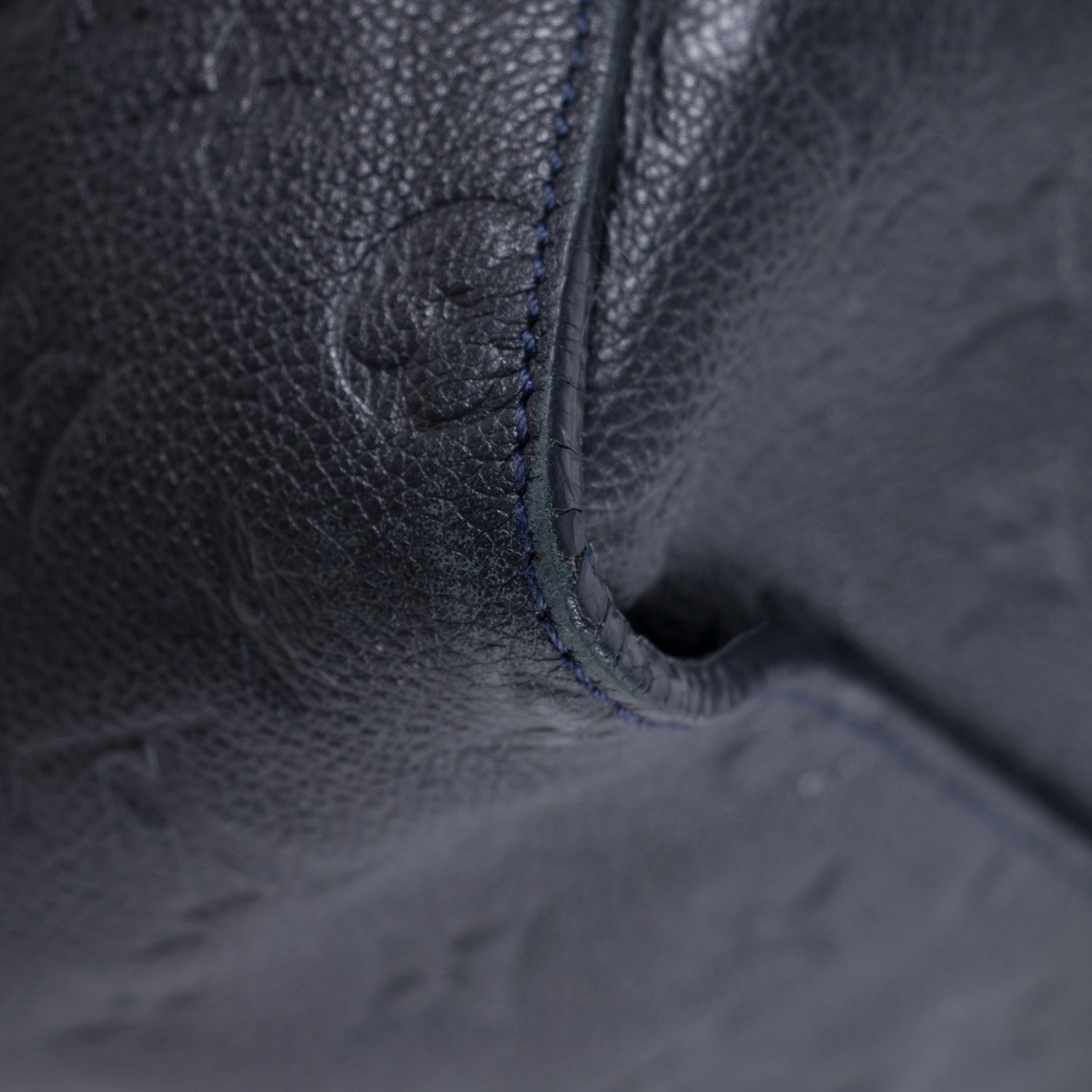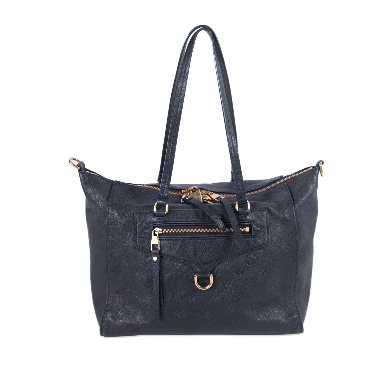 Details: Deep Navy Blue Monogram Empreinte Leather / Gold-Tone Hardware / Detachable and Adjustable Shoulder Strap / Dual Flat Handles / Zipper Pocket at Front / Fabric Interior Lining / Zipper Pocket at Inside / Dual Way Zipper Closure at Top