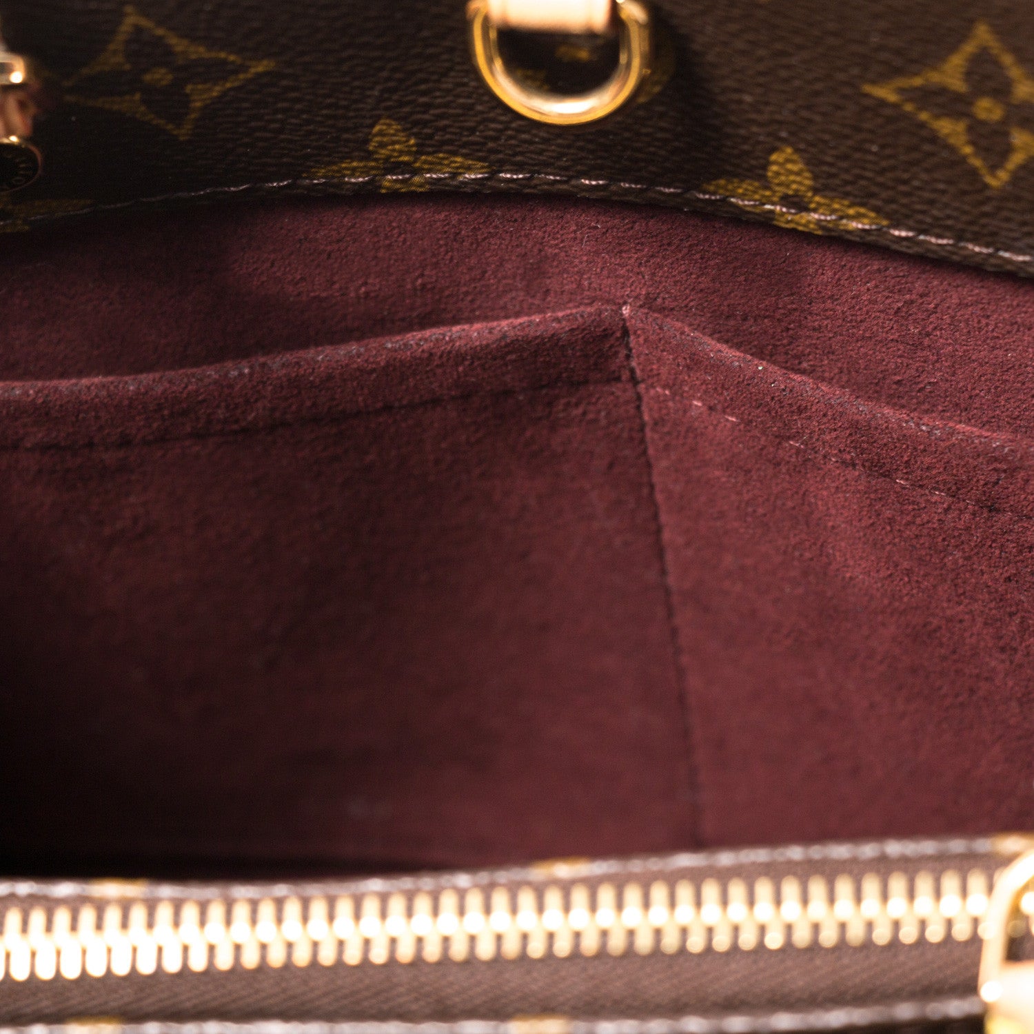 Details: Brown And Tan Monogram Coated Canvas / Natural Cowhide Tan Vachetta Leather Trim / Golden Brass Hardware / Dual Rolled Handles / Detachable Shoulder Strap / Burgundy Alcantara Interior Lining / One Central Zippered Compartment With Padlock / Dual Wide Compartments / One Double BB Pocket / Single Flat Pocket / Protective Studs At Base
