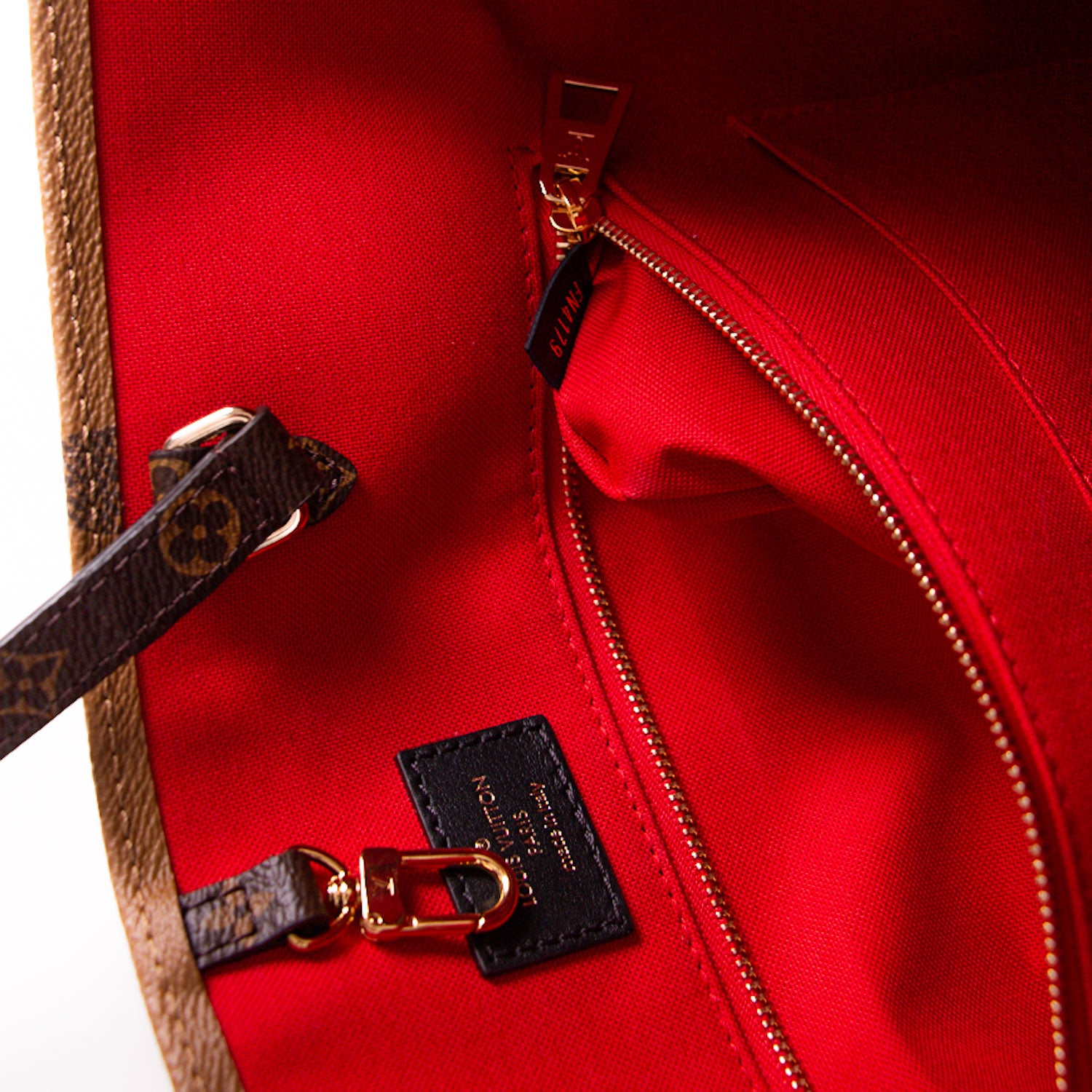 Details: Brown Monogram, Monogram Inverse and Monogram Giant Coated Canvas / Gold-Tone Hardware / Dual Rolled Handles and Shoulder Straps / Red Fabric Coated Canvas / Dual Flat Pocket and One Zipper Pocket at Inside / Lobster Lock at Top