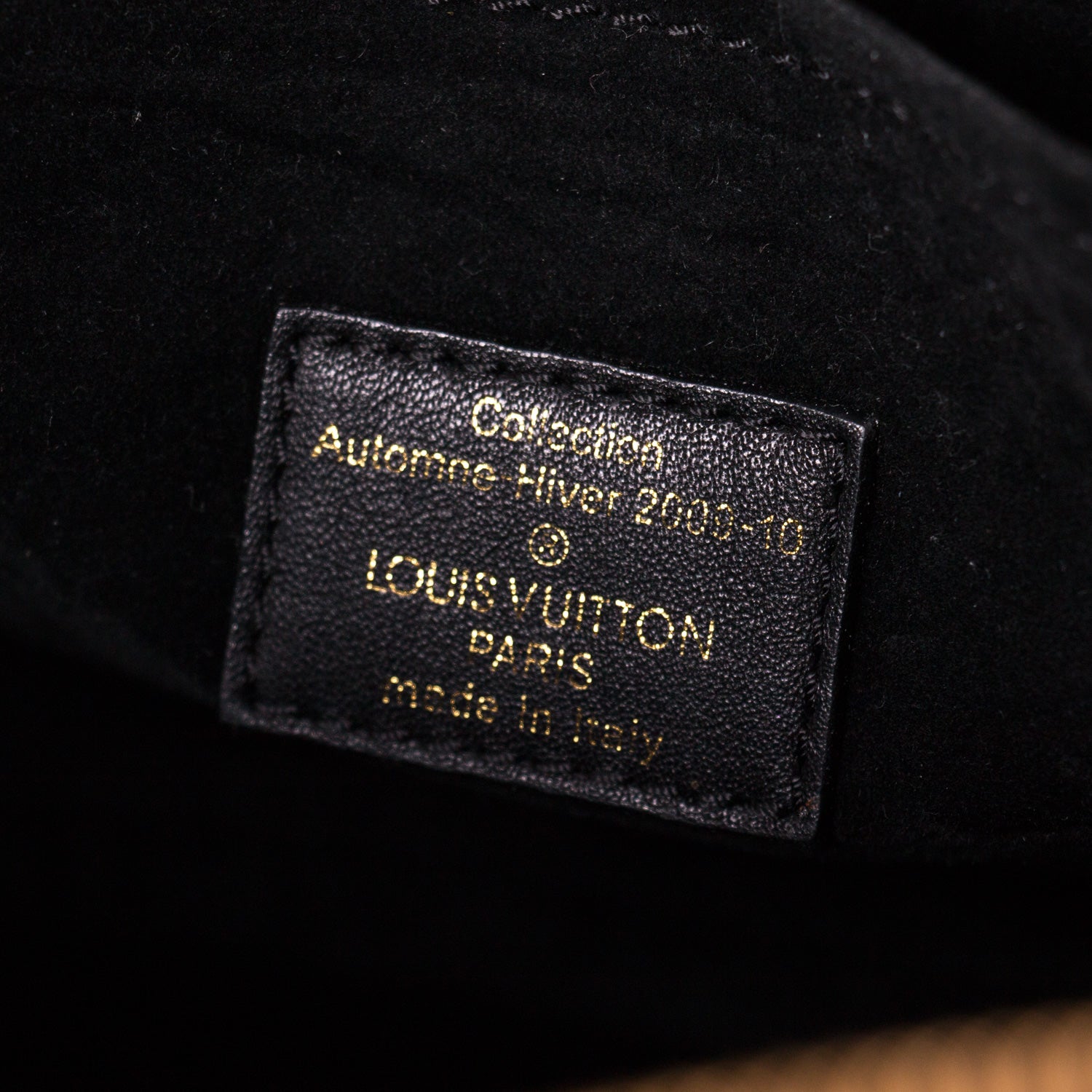 Details: Monogram Coate Canvas with Black Sequin / Gold-Tone and Silver Hardware / Dual Leather Shoulder Strap / Black Leather Accent / Black Toile Canvas Lining / Slit Pocket at Interior / Dual Zip Closure at Top / Protective Studs at Base