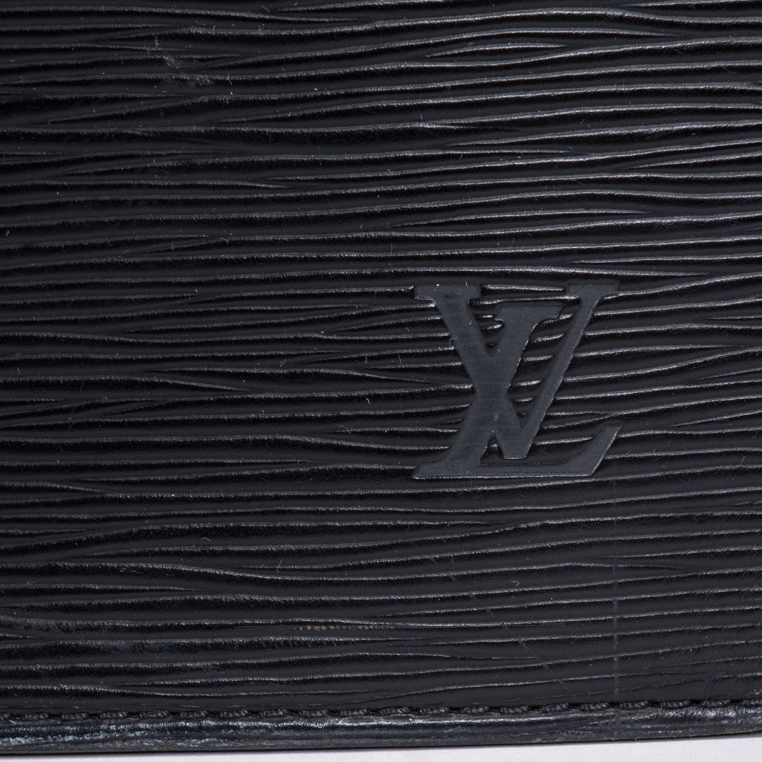 Details: Black Epi Leather / Single Leather Handle / Three Large Compartments At Interior / Dual Phone Pockets At Center Wall / Exterior Slit Pocket At Back / Gold-Tone Hardware / S-lock Closure At Center Front