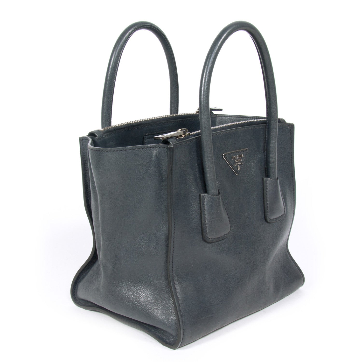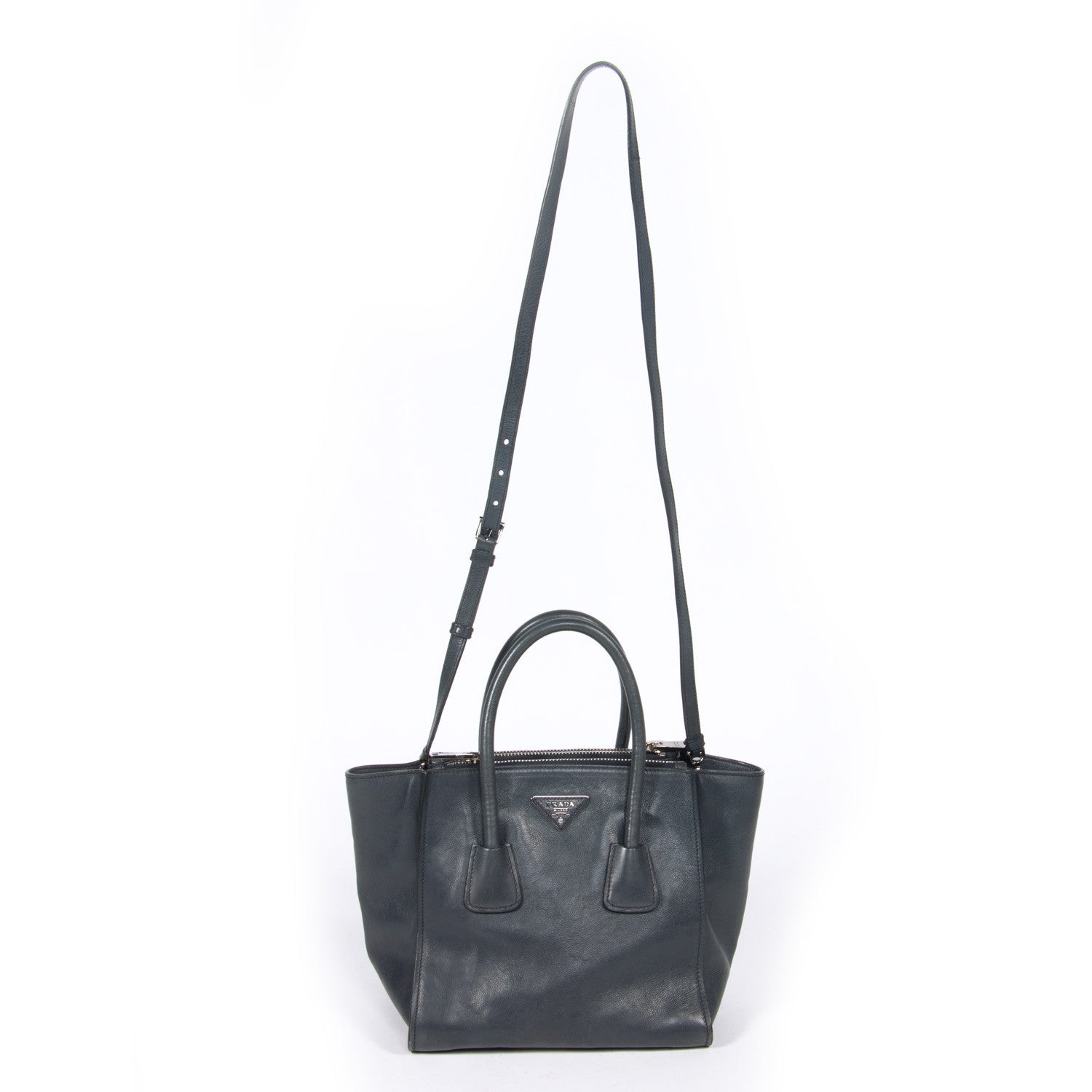 Description: Authentic Prada Glace Calf Twin Tote in Denim Color