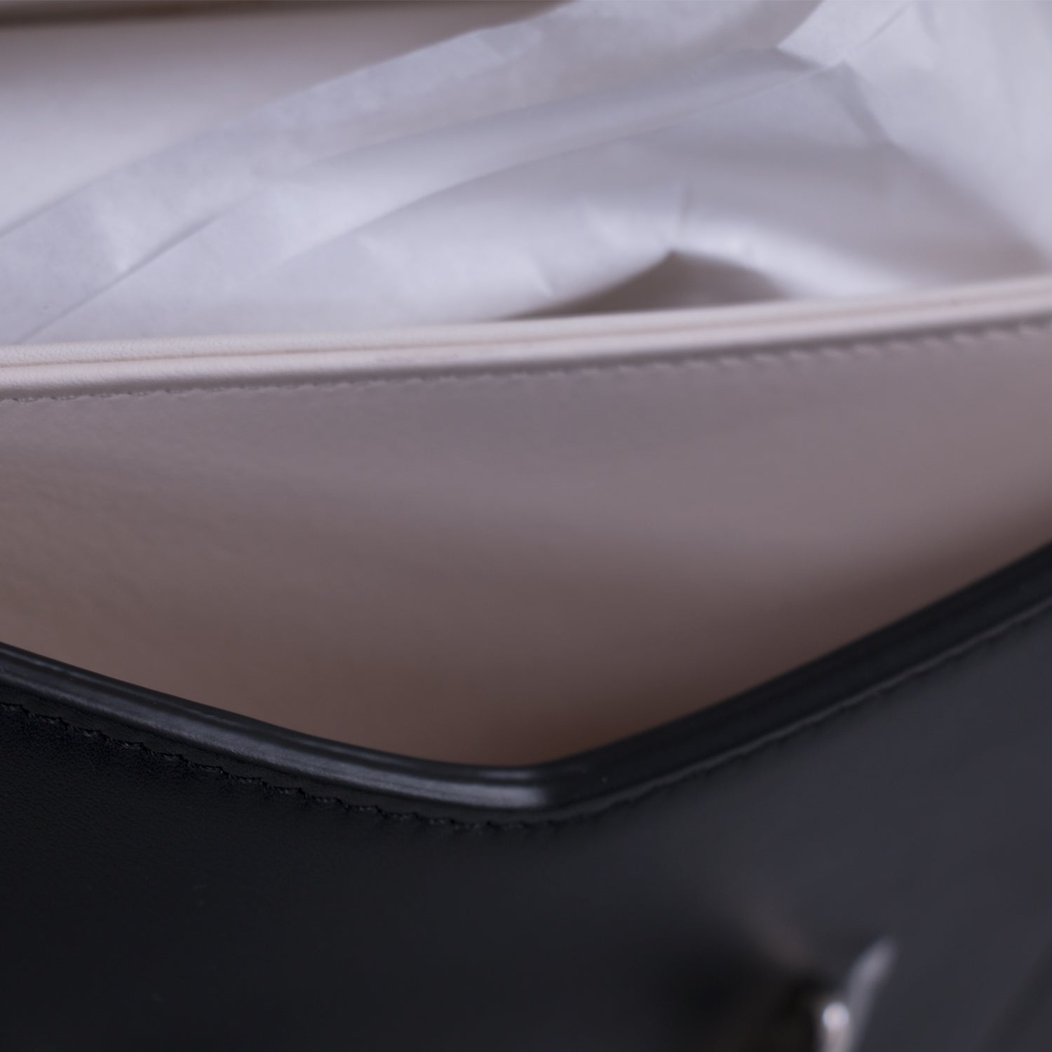 Details: Black and White Leather / Silver-Tone Hardware / Adjustable Shoulder Strap / Interior Leather Lining / Internal Zipped and Slot Pockets / Front Slit Pocket / Magnetic Snap Closure