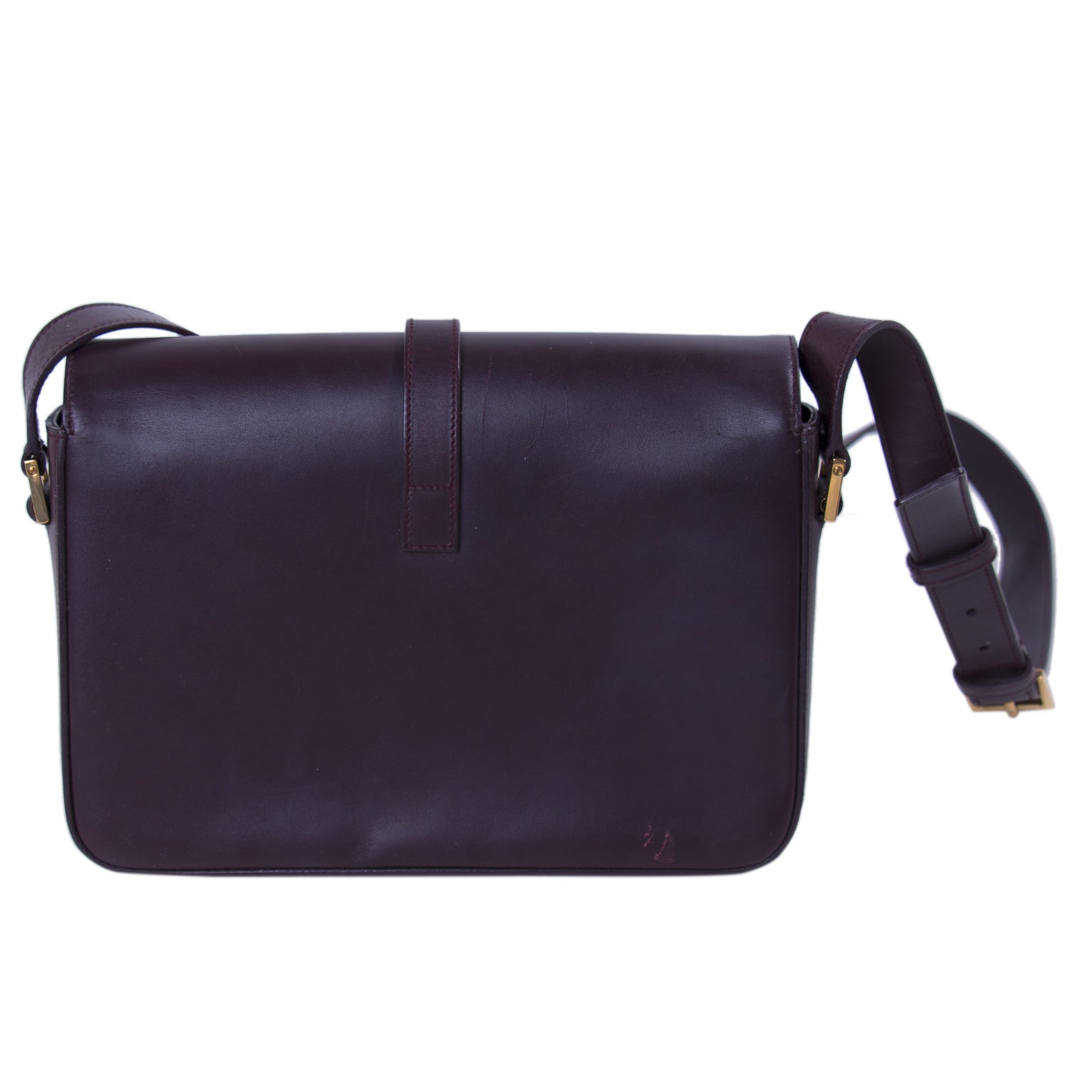 Details: Burgundy Leather / Gold-Tone Hardware / Adjustable Shoulder Strap / Logo at Front / Suede Interior Lining / Flat and Zipper Pocket at Inside / Magnetic Snap Closure at Top