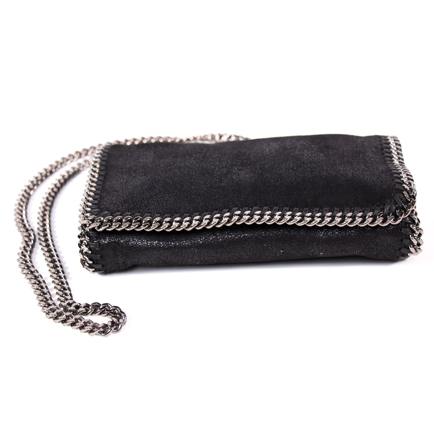 Details: Black Vegan Suede / Silver-Tone Hardware / Single Chain-Link Shoulder Strap / Pink Printed Woven Lining / Single Interior Slit Pocket / Magnetic Snap Closure At Front Flap