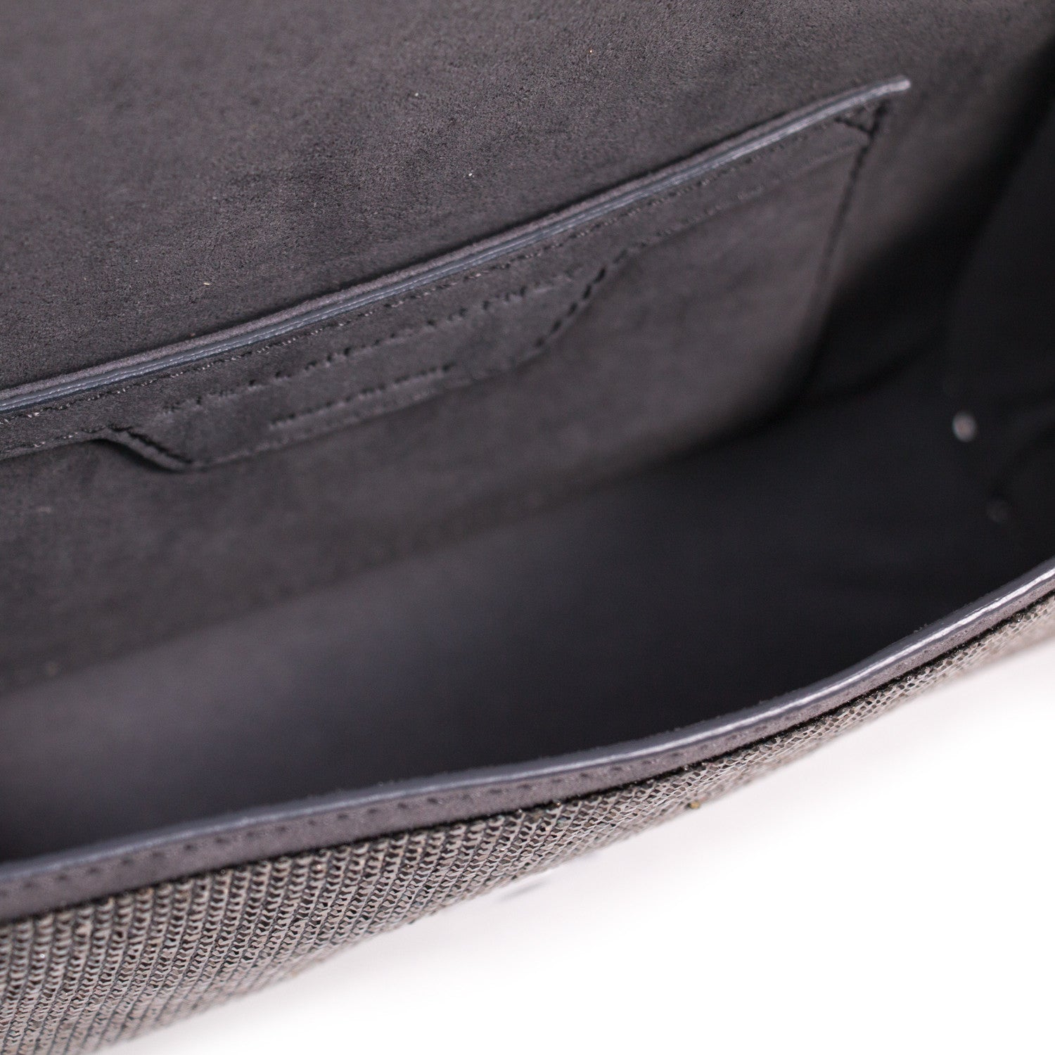 Details: Grey And Silver Crystal Embellished Shoulder Bag / Silver-Tone Hardware / Crystal Adornments Throughout / Concealed Chain Shoulder Strap / Grey Fabric Lining At Interior / Single Internal Slit Pocket / Magnetic Snap Closure At Front Flap