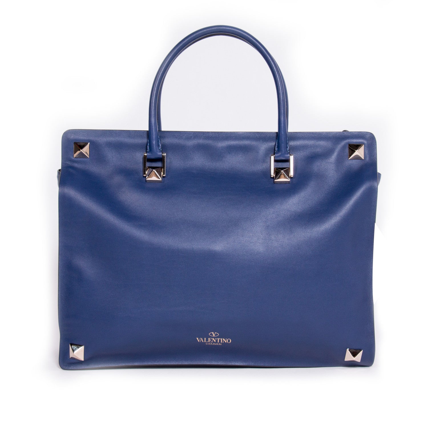 Description: Valentino Blue Leather Double Handle Bag