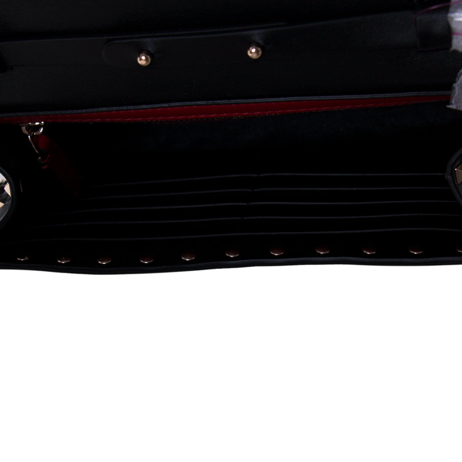 Details: Black Quilted Calf Leather / Gold-Tone Hardware / Detachable Chain-Link Shoulder Strap / Stud Embellishment Throughout / Black and Red Lining / Single Compartment with Zipper Closure / Ten Card Slots and One Bill Compartment / Turn-Lock Closure at Front Flap