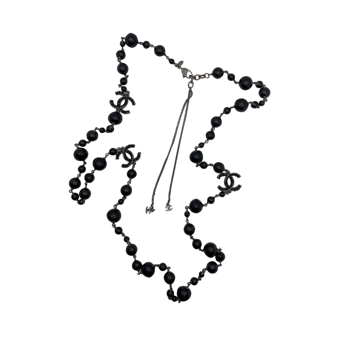 Chanel Black Bead Long Necklace