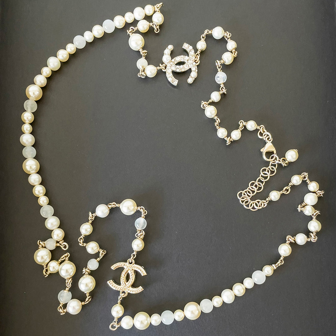 Chanel White Pearl Long Necklace