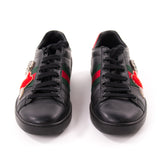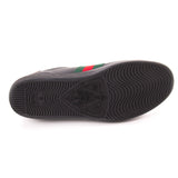 Description: Authentic Gucci Pre-Owned Ace Black Leather Embroidered Sneaker