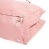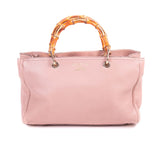 Details: Light Pink Grained Leather / Gold-Tone Hardware / Dual Bamboo Handles / Detachable Shoulder Strap / Natural Canvas Lining / Three Compartments, One with Zip Closure / Four Interior Pockets / 2 Magnetic Snap Closure