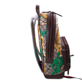 Details: Beige-Ebony GG Supreme Coated Canvas With Gucci Bengal Print / Brown Leather Trim / Embossed Logo Patch At Front Face / Adjustable Signature Green And Red Web Straps / Flat Leather Handle / Brass Hardware / Exterior Zip Pocket At Front Face / Microfiber Lining With Suede Finish At Interior / Interior Pocket For Laptop / Two Smartphone Pocket / Two-Way Zip-Around Closure