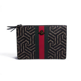 Details: Grey and Brown Coated Canvas / Silver-Tone Hardware / Detachable Leather Shoulder Strap / Handle at Back / Green and Red Stripe / Bee Embroidery at Front / Black Suede Lining / Zipper Pocket at Inside / Three Compartments, Two with Zipper Closure