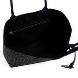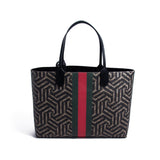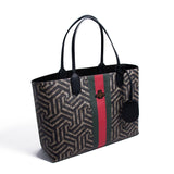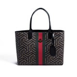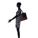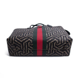 Details: Grey and Brown Coated Canvas / Silver-Tone Hardware / Detachable Leather Shoulder Strap / Handle at Back / Green and Red Stripe / Bee Embroidery at Front / Black Suede Lining / Zipper Pocket at Inside / Three Pockets, Two with Zipper Closure