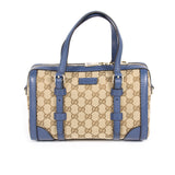 Details: Brown And Beige Coated Canvas / Gold Tone Hardware / Dual Rolled And Adjustable Handles / Detachable And Adjustable Shoulder Strap / Blue Leather Accent / Single Compartment / Three Pockets At Interior Walls, One With Zip Closure / Beige Fabric Lining At Interior / Two-Way Zip Closure At Top