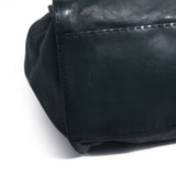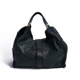 Details: Green Soft Leather / Brass Hardware / Dual Rolled Handles / Black Suede Interior Lining / Three Pockets at Inside, One with Zipper Pocket