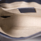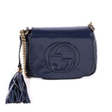 Details: Navy Blue Patent Leather / Gold-Tone Hardware / Single Shoulder Strap / Tassel Accent / Interlocking GG Logo Detail At Exterior Front / Beige Canvas Lining At Interior / Single Slit Pocket At Interior Wall / Magnetic Snap Closure At Front Flap