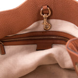 Details: Gold Brown Leather / Gold-Tone Hardware / Dual Chain-Link with Leather Pad Shoulder Strap / Logo at Front Face / Tassel Embellishment / Natural Lining at Interior / Three Pockets one with Zipper / Lobster Clasp Closure at Top