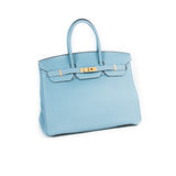 Description: Authentic Pre-Owned Hermès Birkin 35 Ciel Clemence Leather