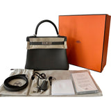 Description: Authentic New Hermès Kelly 28 Retourne Gris Meyer in Togo Leather