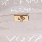 Details: Limited Edition / Transparent PVC / Gold-Tone Hardware / Single Flat Top Handle / 'Souvenir de l'Exposition 1997 Hermes' Print At Flap /'Un Voyage Au Pays Des Merveilles' Motif / Front Flap Turn Lock Closure