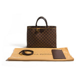 Details: Brown Damier Ebene Coated Canvas / Gold-Tone Hardware / Dual Rolled Handles / Detachable Shoulder Strap / Studs at Base / Alcantara Lining / Dual Compartments / Three Interior Pockets / Clasp Closure
