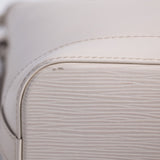 Details: Ivory White Epi Leather / Silver-Tone Hardware / Dual Rolled Handles / Beige Canvas Lining / Dual Slit Pockets / Zipper Closure at Top