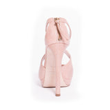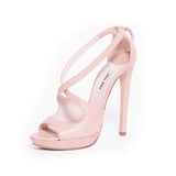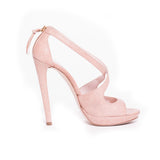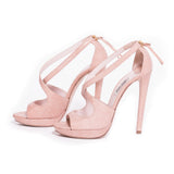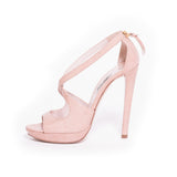 Details: Nude Color Leather / Sandals Platforms / Cross Over Straps At Front / Tonal Stitching Throughout / Cover Heels At Counter / Gold Tone Zip Closure At Counter