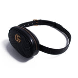 Details: Black Chevron Leather / Antique Gold-Tone Hardware / Black Stitching Details / Adjustable Belt Closure / Double G Logo at Front / Micro-Fiber Suede Interior Lining / Slit Pocket at Inside / Zip Closure at Top