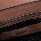 Details: Light Brown Calf Leather / Silver-Tone Hardware / Dual Rolled Handles / Detachable and Adjustable Shoulder Strap / One Compartment / Black Jacquard Lining / Zipper and Flat Pocket at Inside / Clasp Lock at Front Flap