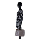 Details: Grey Etoupe Saffiano Leather / Gold-Tone Hardware / Dual Rolled Handles / Black Fabric Lining / Three Compartments, Two with Zip Closure / Four Pockets at Interior, One with Zip Closure.